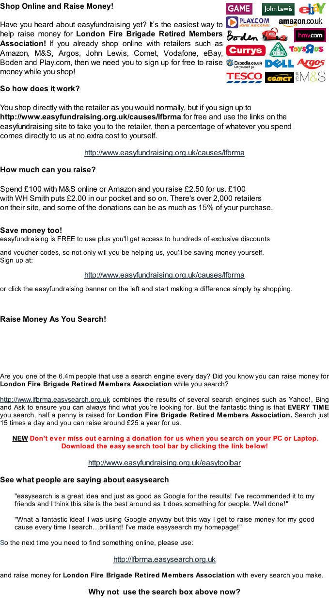 Donations Update  39 Members Have Now Registered & Together Have Helped Raise  £175.04 (Total To Date)  For the LFBRMA  At NO cost to themselves  So if you haven’t signed up make the effort  DO IT NOW!  You Can Make A Difference